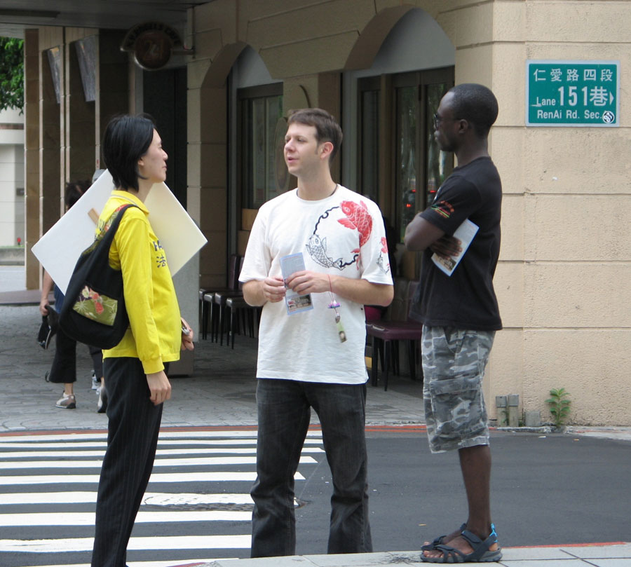 许多在街上观看游行队伍的民众,表达出对法轮功的支持和想学功的兴趣。来自美国波士顿的西方人马克(Mark)是位基督徒,他表示自己已在台湾待了二年,到处都可看到法轮功,在美国也看到,但还是不清楚法轮功是什么。他向学员了解后,随即表示要学功,还询问哪里有炼功点。当他知道大安森林和中正纪念堂都有炼功点后,很高兴地留下学员的名片后离开。