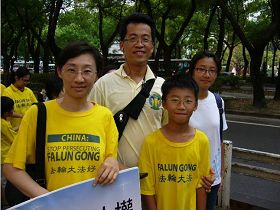 来自花莲的钟小姐和任职国中教务主任的先生与两个孩子,全家搭乘火车远从东部前来参加游行。钟小姐表示,法轮功受到迫害已经十年了,我们今天想走出来呼吁大家正视最基本的人权问题和普世价值。