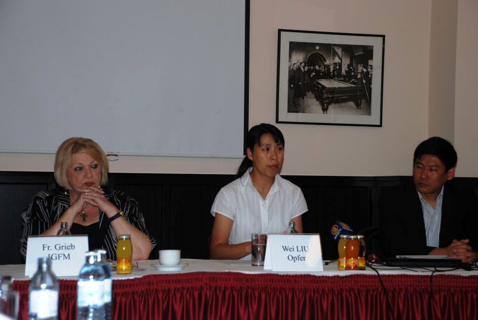 现居住德国的华人刘女士应邀到维也纳,在记者招待会上讲述了她在中国遭受迫害的亲身经历。刘女士在办公室的法轮功资料被同事发现,警察将她非法抓捕,没有经过任何法律程序就非法劳教十八个月。她在劳教所里遭受长时间刑罚,被迫观看污蔑法轮功的录相,几天几夜不允许睡觉。不仅肉体上的折磨难以忍受,被迫写反对大法和大法创始人的话,家里亲人不理解、要断绝关系,更使刘女士痛苦无比。