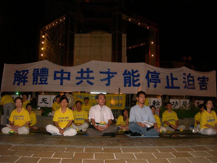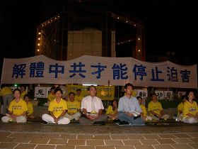 ![]() 云林县议员刘建国(左四)席地而坐一同参加悼念会,支持法轮大法学员争取正义、人权、信仰,共同制止这场迫害 |