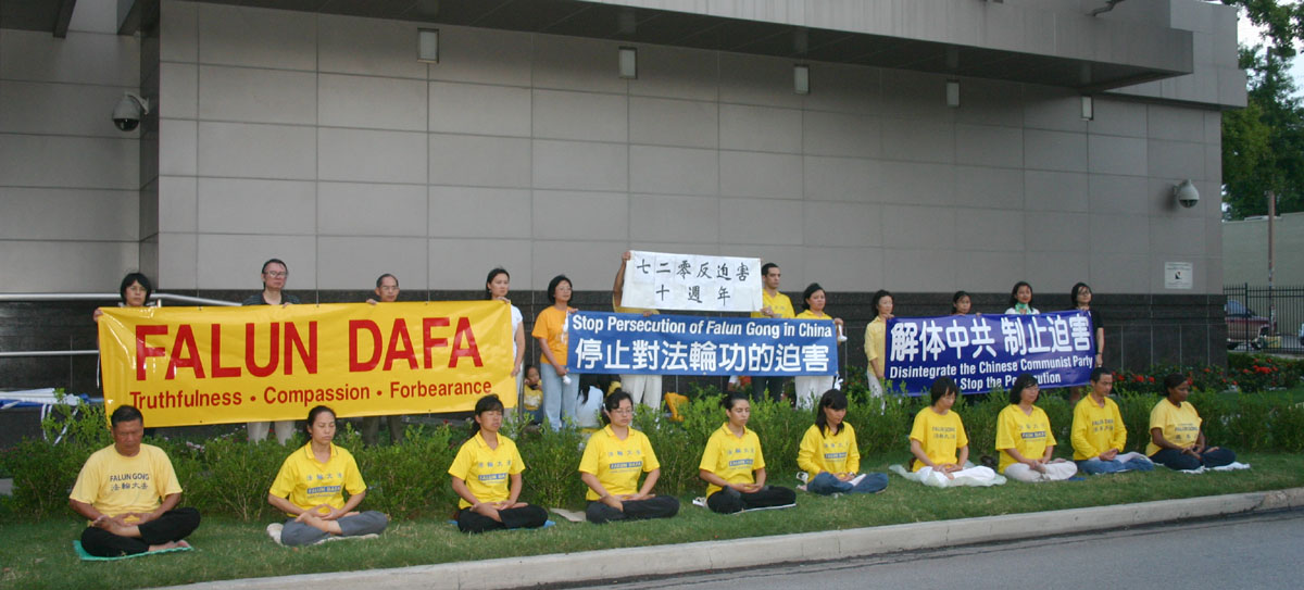 ![]() 七月二十日,法轮功学员在中领馆前集会,呼吁共同制止迫害。 |