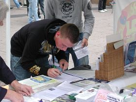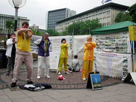 活动包括酷刑图片展、法轮功功法演示以及反迫害征集签名等内容。