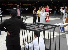 法轮功学员在发言中,以亲身经历揭露中共当局对法轮功所实行的惨无人道的迫害,呼吁各界正义人士共同起来谴责中共的反人类罪行,支持法轮功学员的反迫害壮举。同时向中使馆喊话呼吁中使馆的工作人员尽早的了解法轮功真相,不要再做中共帮凶。