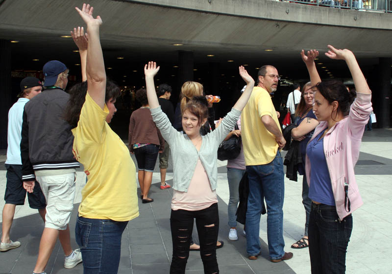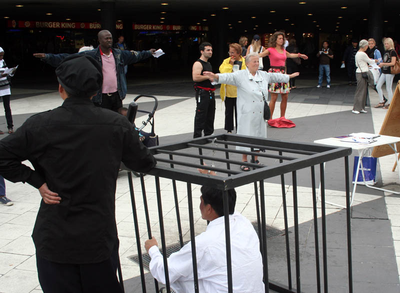 二十日上午法轮功学员在斯德哥尔摩市中心(Sergels Torg)广场举办大型的洪法讲真相活动。活动的主要内容有:法轮功真相图片展览、演示五套功法,展示大法美好的歌舞、乐器表演,真人模拟酷刑展,曾在中国遭受迫害的法轮功学员讲述亲身经历,现场义务教功等。