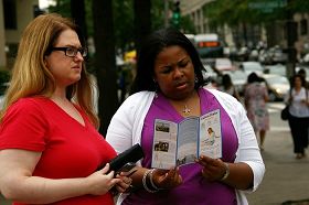 ![]() 费城Fox29 电视台采访法轮功学员。 |