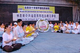 ![]() 2009年7月20日,卡尔加里法轮功学员在中领馆前烛光悼念在过去10年中被中共迫害致死的法轮功学员。 |