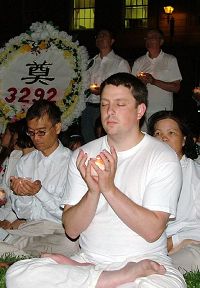 从二零零五年开始修炼的法轮功学员亚历克斯(Alex) 说:“今晚我坐在这里感到很和平、宁静。我们就是要支持正义,停止在中国对法轮功的迫害。我注意到很多人路过这里停下来了解真相,有的停下了很长时间。但愿他们的心与我们在一起,希望他们能告诉他们的朋友、亲人及周围的人,让更多人知道真相,最终停止对法轮功的迫害。”