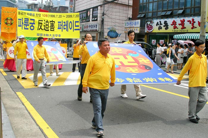 ![]() 七月十九日韩国法轮功学员在首尔的加里峰和大林地区集会 |