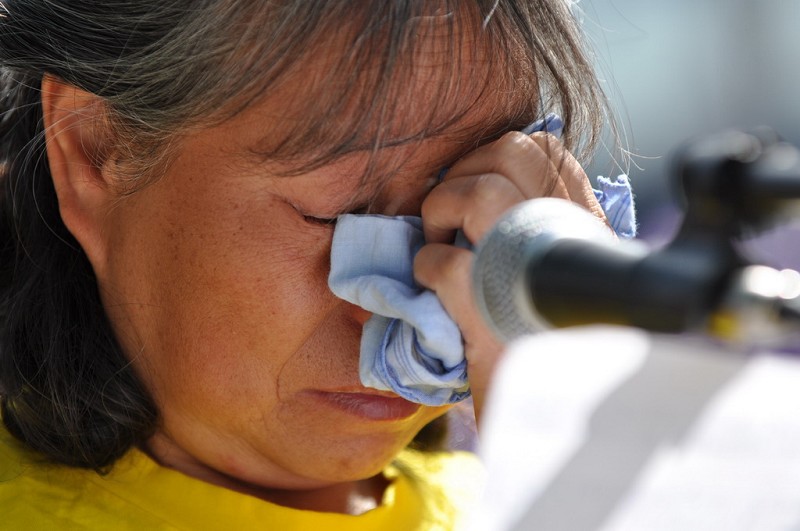 ![]() 黄金玲女士谈到中共对众多法轮功修炼者惨绝人寰的迫害,泣不成声。 |