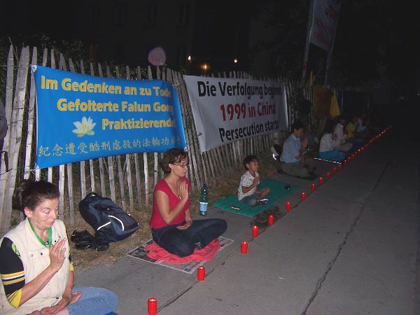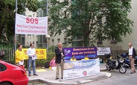 ![]() 奥地利法轮功学员在维也纳中使馆前呼吁制止迫害。 |