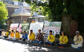 ![]() 在中共驻荷兰海牙使馆前抗议迫害 |