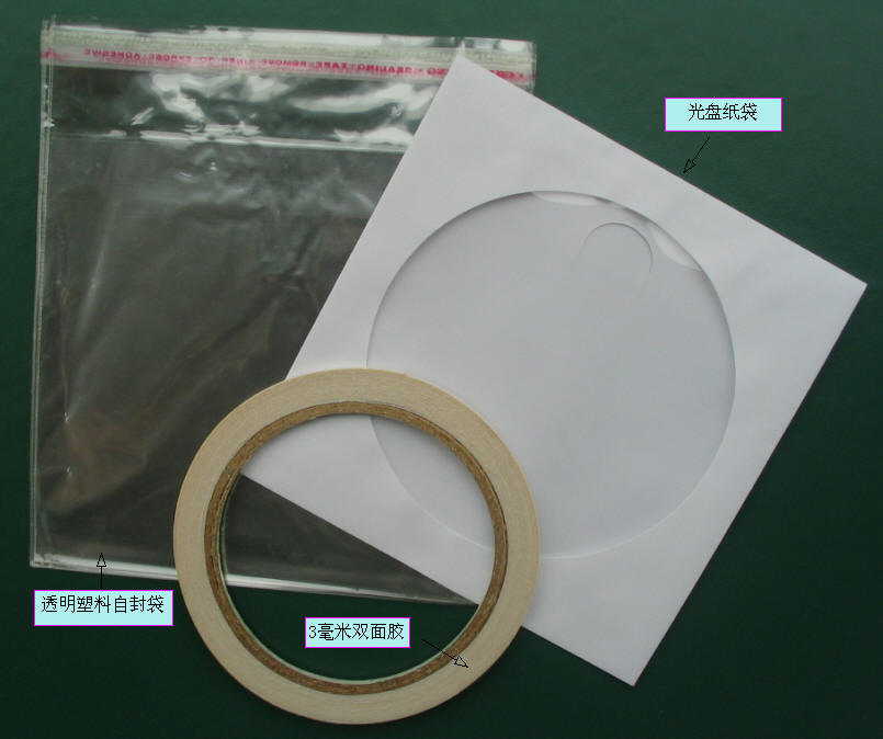 3)装光盘用的透明塑料自封袋(100个/包,2.5元左右)