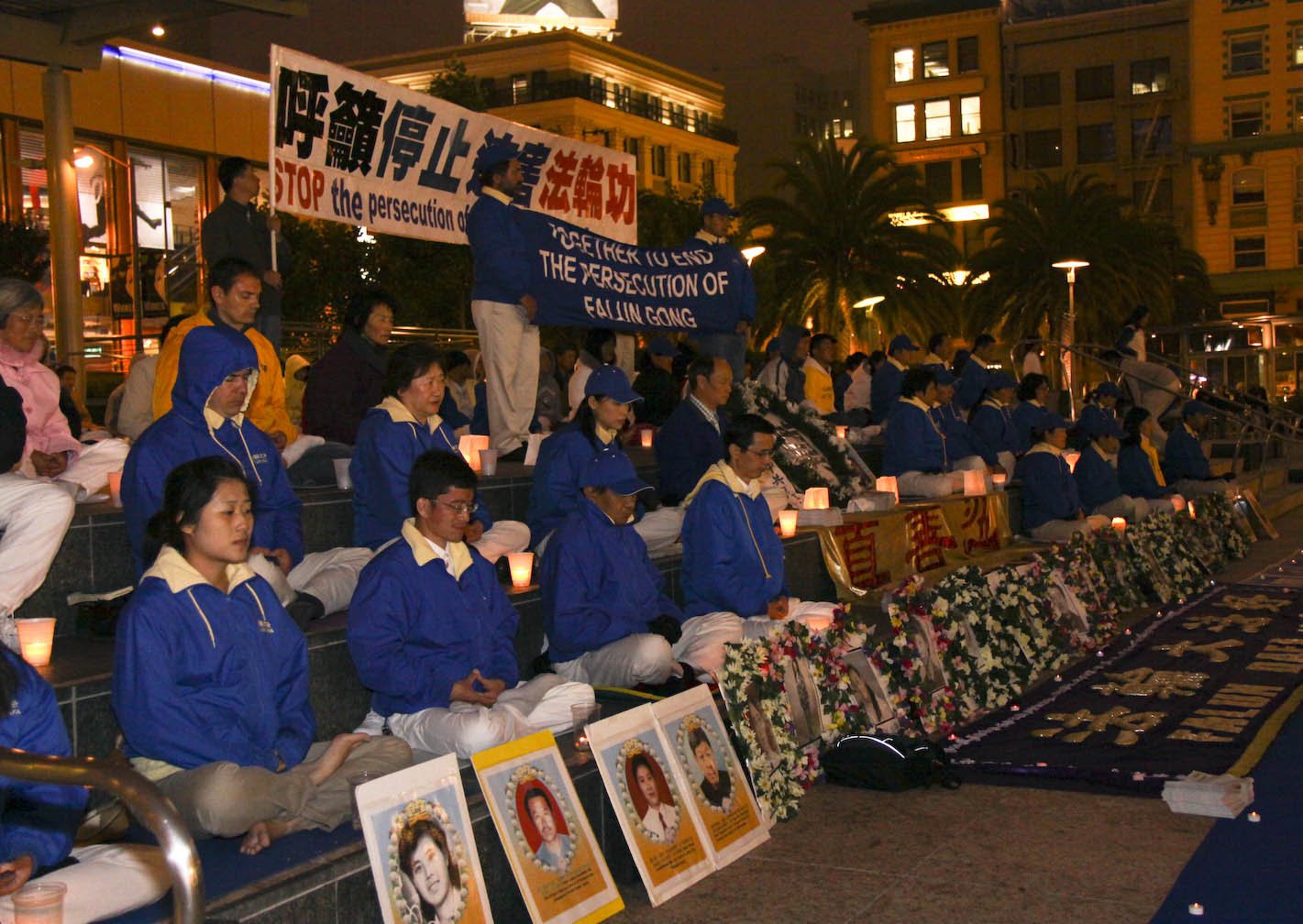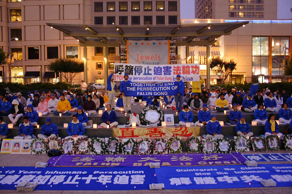 联合广场的烛光守夜夜幕降临,法轮功学员在联合广场点起烛光,悼念被中共迫害致死的法轮功学员。