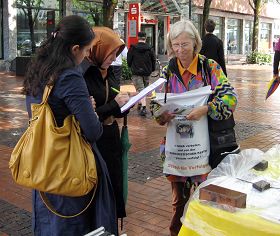 还有一个善良的德国老太太非常想详细知道什么是法轮功,为什么这些人被迫害?在了解了真相之后,老人的善心被触动。