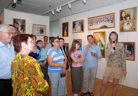“卡西尔卡”展厅的设施很专业,几十幅美术作品把展厅布置得庄严、隆重,法轮功学员们在画作《佛像》前献上了鲜花。俄罗斯“人权保障中心”的代表巴纳马廖夫先生十年来一直支持法轮功,他在开幕式上发言预祝画展成功。俄罗斯朝鲜族法轮功学员维拉尼卡演唱了歌曲。