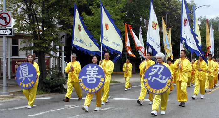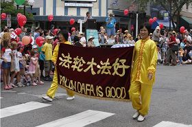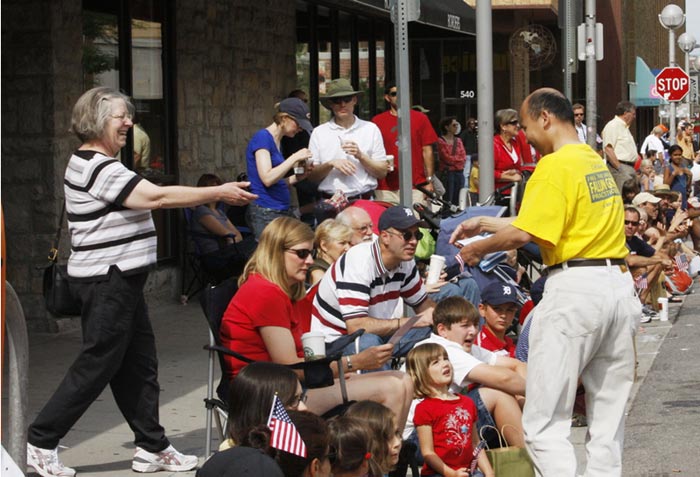 法轮功学员参加美国密歇根州安娜堡市第十九届独立日游行活动 |