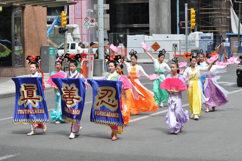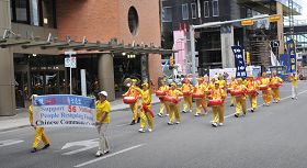 移民加拿大已十余年的叶女士在观看法轮大法队伍游行时泪流不止,并随着队伍一直走到终点,仍恋恋不肯离去。她对法轮功的游行队伍赞不绝口,“好漂亮噢!而且我看到队伍里有外国人耶!”