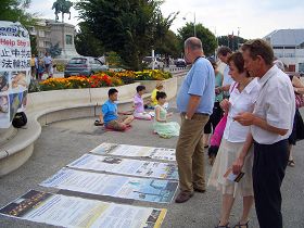 许多路过的游客,在了解法轮功真相之后,纷纷对学员表示:“谢谢”,“加油”,“祝你们好运!”不少游客主动要求签名反迫害。有的还当场学炼法轮功功法。