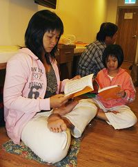 ![]() 越南新娘黎白雪与女儿一同参加剑潭活动中心学法交流 |