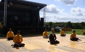 ![]() 丹麦RY市的多元文化节上,法轮功学员演示功法。 |