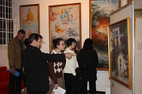 许多观众除了赞赏画作之外,还对法轮功表示极大的兴趣。一对俄罗斯夫妇被画中的内容所感动,他们表示,以前听说过法轮功被迫害的事,观看画后,他们想学炼法轮功。这对夫妇第二次前来观画展时,告诉工作人员,他们已购买了《转法轮》
