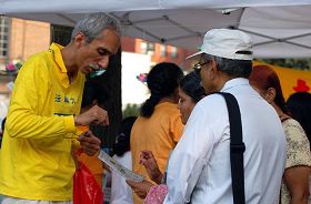 ![]() 法轮功学员在波士顿华埠中秋联欢上免费教功。 |