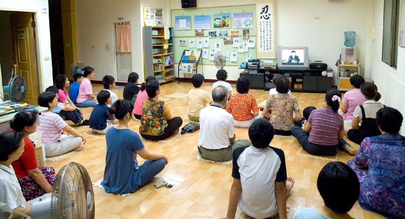 ![]() 法轮功九天学习班,集体看法轮功创始人李洪志先生于广州讲法 |