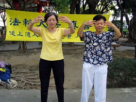 林姐六十四岁,以前是佛教弟子,每天有运动习惯。林姐很早就听过法轮功,因为住嘉义的弟弟也是学员,曾给她一些功法的资讯,她偶而会炼炼,但是真正开始学炼是两个月前。她路经炼功点,在辅导员的热诚辅导下,她讶异自己竟然能坚持下来,和以前运动偶一为之的习惯不同。七月份,她和女儿一起参加法轮功的九天学习班,林姐表示,法轮大法教人做好人、要善,她感觉能接受。