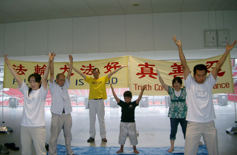 ![]() 十岁的日本小男孩儿和法轮功学员们一起炼功 |