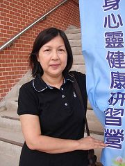 洪王金莲女士年轻时从事服装设计,多年的劳累使她眼睛受到损伤,她表示张清溪教授提到自己的亲友因炼法轮功而身体痊愈,让她很受触动,她表示自己也很想炼,她说:“这个年纪,把身体照顾好,下一代比较没有负担。”