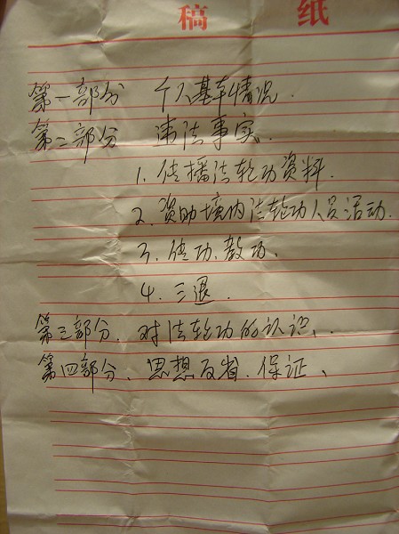 ![]() 中共国安诱骗邵玉华写悔过书的大纲(此为中共国安的笔迹) |