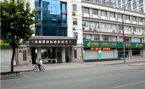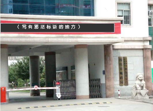 近日发现潍坊市邮政局门前悬挂有一幅邪恶标语(图),据周围的人讲,这条邪恶标语已挂有多日了,由于每天来邮局办理业务的人很多,门前路上的车辆和行人也很多,因此毒害着周围及往来的世人。