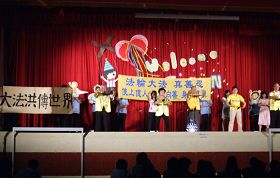 ![]() 台湾宜兰高商迎新社团活动,上演介绍法轮大法的舞台剧。 |