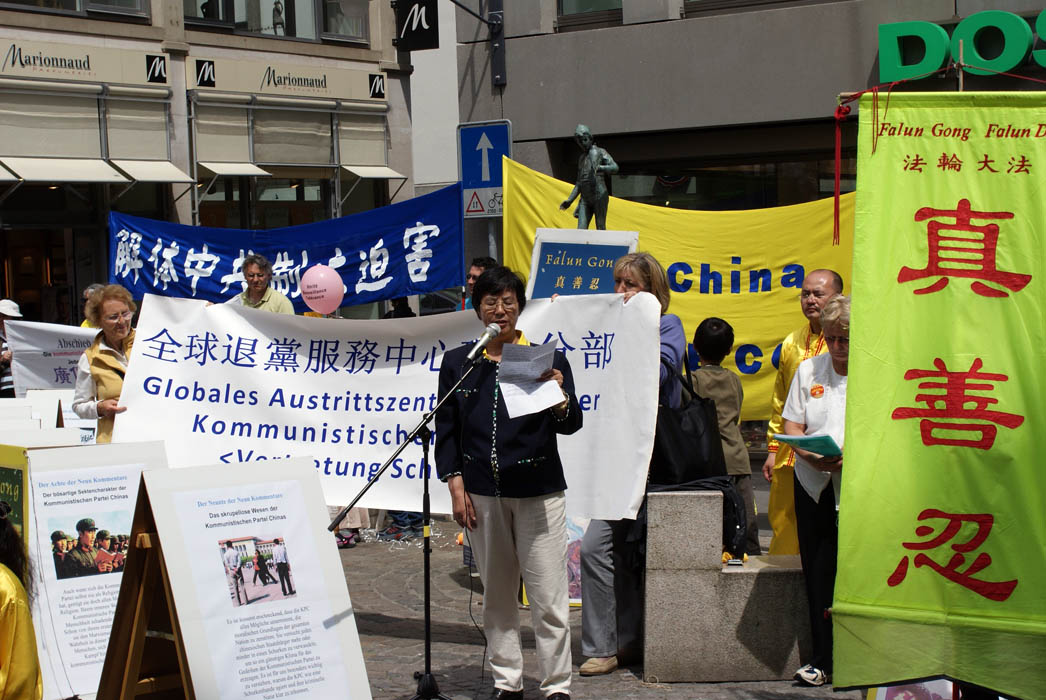![]() 潘阿姨二零零九年五月十三日在瑞士庆祝“世界法轮大法日”活动上发言 |