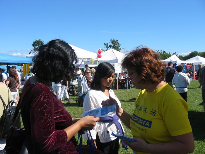 有不少人都听说过法轮大法和发生在中国的迫害,并对法轮功表示支持。一位华裔老先生和白人太太路过时,笑着停了下来说:“我们刚才还正在讨论法轮功呢,真巧碰到你们。”老太太指着老先生说,“他告诉我,你们很棒。”老先生竖起大拇指,然后指着正在打坐的学员说,“我也能象她那样双盘。”他们拿了传单,表示回去要上网站进一步了解大法。