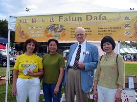 ![]() 正在竞选市议员的威廉·胡弗先生同法轮功学员合影 |
