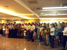 七至十一日,学校师生集体参观。幼苗国际托儿所、威尼斯特堡文教机构、福禄贝尔托儿所、大全幼稚园、天鹅园托儿所、育林文教机构、新永福幼稚园、儿童天地托儿所、三光国小、修德国小、正义国小以及谷保家商共十二所学校的师生前来欣赏画作,其中有些学校班级以前就开始学炼法轮功,坚持至今。
