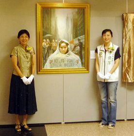 台北县李倩萍议员看到《纯真的呼唤》画作中那小女孩的神情令人心痛,不能理解为何基本的人权——宗教信仰自由(在中国)会被迫害?作品呈现为“真”,表达法轮功学员在中国大陆遭受迫害的事实;《小礼物》呈现“善”,人与人之间只要心存善念,不分种族语言,就能传递善意;《流离失所》呈现“忍”,为了保护家人与坚持信念,不得已离家而独自艰难地生活,展现出修炼人的坚忍与内心的宁静,最特别的是以天使的鼓励来表现出她心灵的幸福。美展的每一幅画都是一个故事,值得大家来参观。