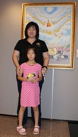 张晋婷早在去年“五股乡体育季”看过法轮功的功法表演后就很想学炼法轮功。这次画展上,她再度表示意愿并询问何处可购置教功影带及大法书籍,最重要的是请学员教会功法。