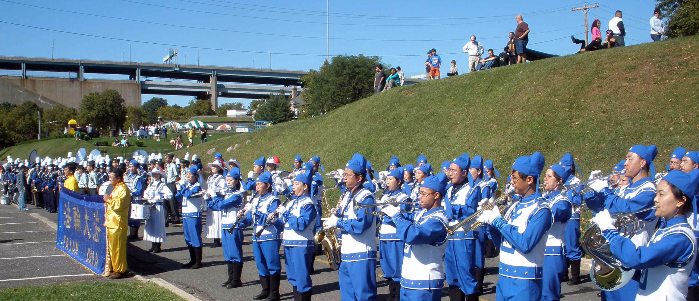 ![]() 天国乐团在游行终点演奏“法轮大法好”、“美丽的美利坚”等 |