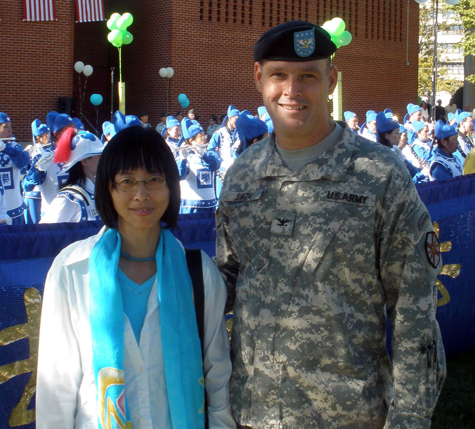 ![]() 基地指挥官斯蒂芬•斯密斯(Steven Smith)上校与法轮功学员 |