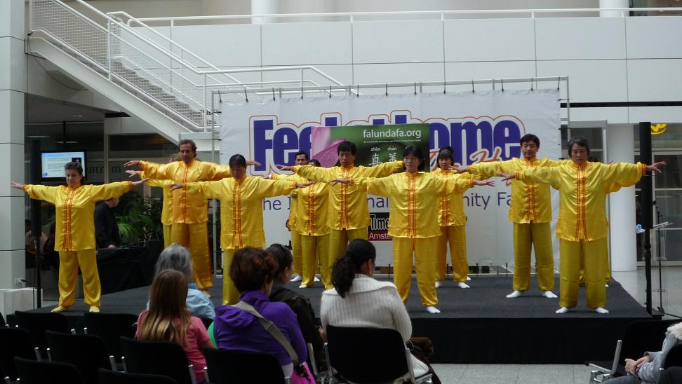 博览会还安排了一些音乐、艺术、健身功法表演等多元文化活动。法轮大法舒缓祥和的功法给人们留下深刻的印象。