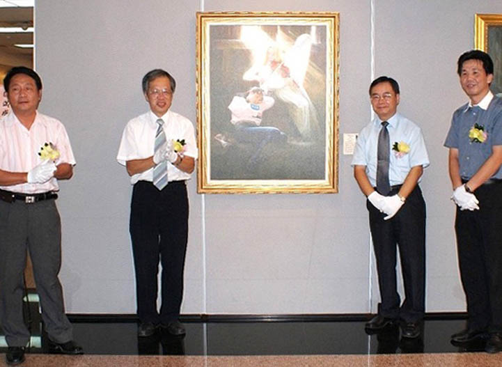 ![]() 由右到左,光明里里长李政达、三重市谷保家商校长郑学忠、新庄市荣富国小校长罗荣森,三重碧华国小校长蔡宝俊共同为美展揭画 |
