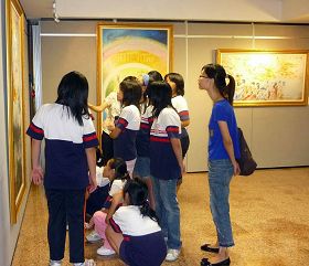 陈先生就读修德国小美术班的女儿班上集体参观过美展,告诉说:“从画作中可以了解到画家心灵层次提升的境界。”她要求爸爸再次带她来看美展。
