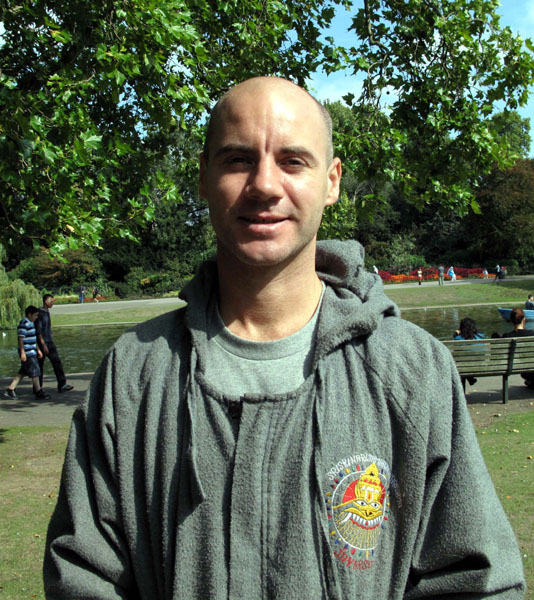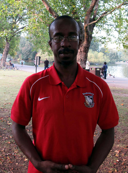 他告诉记者,他昨晚去与朋友聚会,路过鸽子广场附近时碰到有法轮功学员在发传单,他们在让人们了解正在中国发生的对法轮功的迫害。罗伯特接了传单,问法轮功学员在哪里能学功,学员们建议他到摄政公园来。罗伯特晚上回家后立即上网查看,于是决定今天来了。