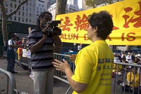 ![]() Retrovision Media记者李斌采访法轮功学员 |