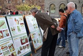 ![]() 人们在真相展板前了解中共对善良民众所犯下的罪行 |