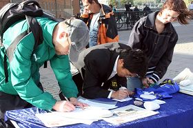 ![]() 民众纷纷签名谴责中共迫害法轮功 |