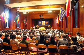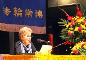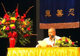 法会从上午九点半开始,至下午五点半结束。二十一位修炼者和六位明慧学校的法轮大法小弟子上台交流了在修炼和证实法的过程中,如何修好自己,去掉人心,做好师父要求的三件事——学法、发正念、讲真相。