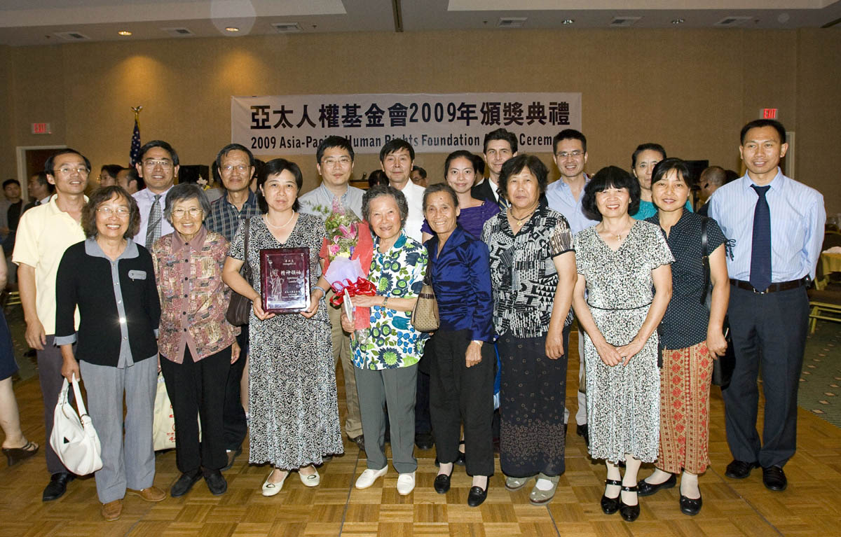 ![]() 9月26日晚,亚太人权基金会将“杰出精神领袖奖”授予法轮功创始人李洪志先生,图为法轮功学员李有甫代表李洪志先生从亚太人权基金会理事刘因全手中接过奖牌。 |